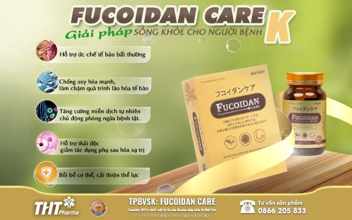 Trong hành trình đối mặt với bệnh K, bên cạnh phác đồ điều trị của bác sĩ, tăng cường dinh dưỡng và nâng cao miễn dịch đóng vai trò vô cùng quan trọng. Fucoidan Care được nhiều người tin tưởng lựa chọn như một giải pháp hỗ trợ sống khỏe, giúp người bệnh nâng cao thể trạng, giảm gánh nặng tác dụng phụ và củng cố sức đề kháng từ bên trong.