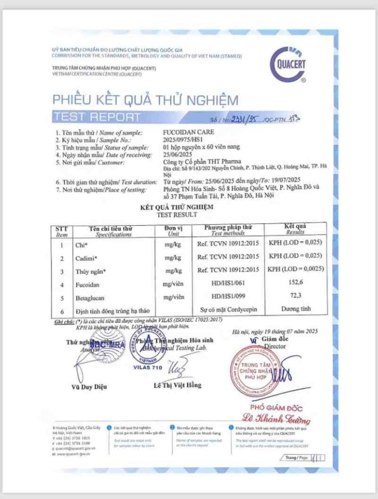 THÀNH PHẦN FUCOIDAN CARE: Trong 1 viên nang có chứa